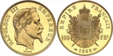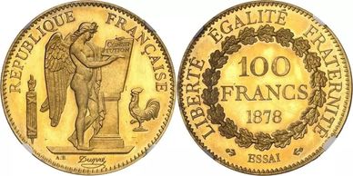 The image on this Gold 100 Franc coin dates back to the French Revolution. At that time, the Republic needed new motifs for its new currency, because naturally, the traditional royal insignias were no longer suitable for the Republican coins. After a contest in 1791, the artist Augustin Dupré was commissioned to design new images.